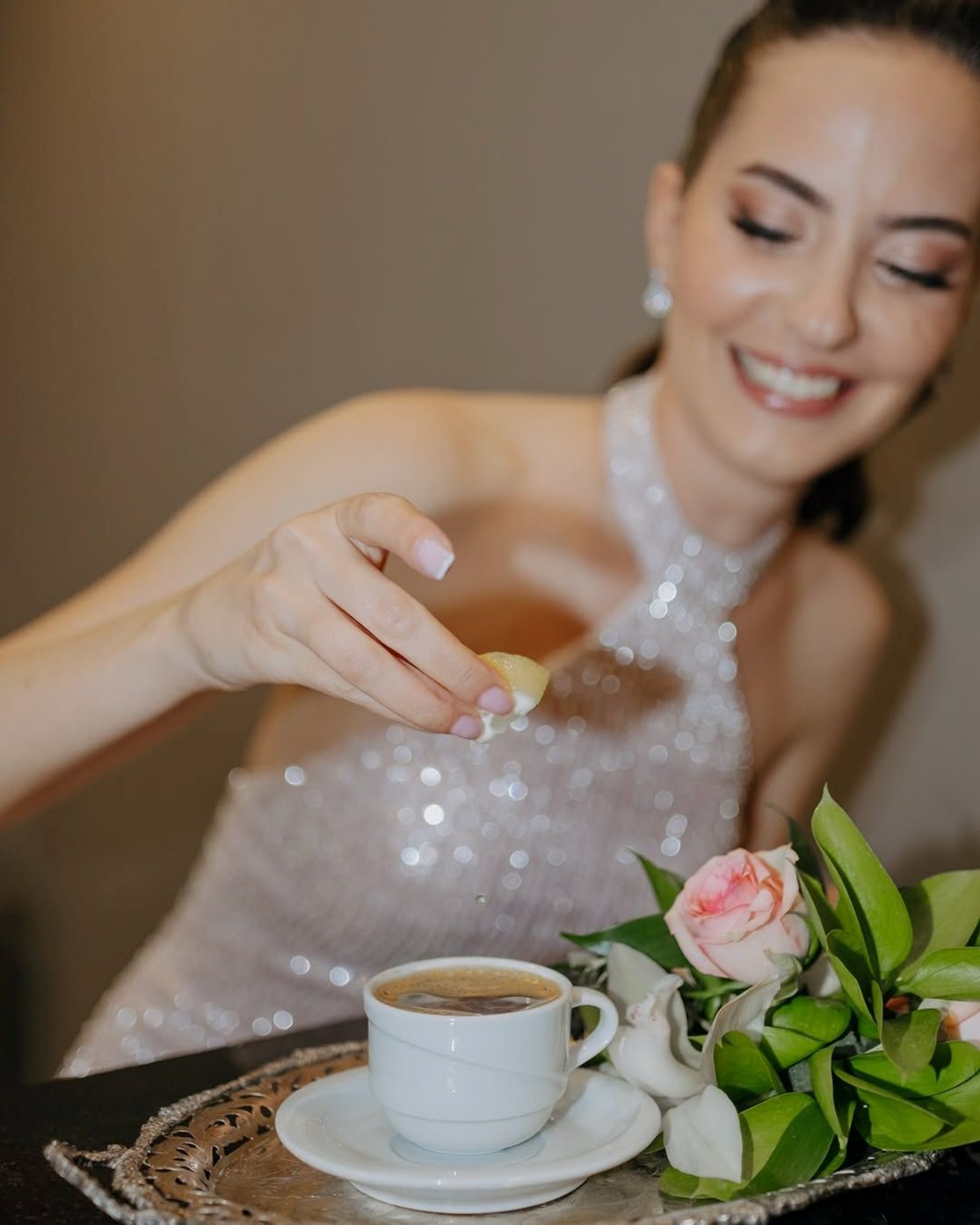 Oyuncu Ezgi Şenler'den nişan pozları: Damat kahvesine limon sıktı